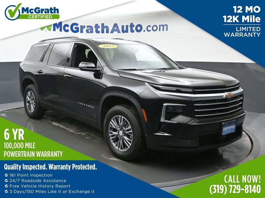 AWD. Odometer is 5600 miles below market average! CARFAX One-Owner. Clean CARFAX.Certification Program Details: McGrath Certified Benefits: * Free Vehicle History Report * 106 Point Full Vehicle Condition Inspection * Like it or Exchange it! Three Day Policy 2025 Chevrolet Traverse LT 2LT 2.5L DOHC AWDWe're in the customer service business first, the car business second.- H.B. McGrath. Our goal is to offer our customers great vehicles at unmatched prices, but the car business isn't just about the product, it's about the people. Welcome to McGrath, your destination for award-winning automotive excellence! Wwe were voted CBJ's 2024 #1 Coolest Place to Work and winner of 2024 Best of the Best Auto Dealer, Auto Service, and Fleet Dealer. We’re proud to deliver unmatched quality and service. With over 11,000 5-star Google reviews, our customers’ trust and satisfaction drive everything we do. Whether you’re buying, servicing, or building your fleet, experience why McGrath is the top choice for all your automotive needs! If we aren't making our customers happy, we aren't in business. It's as simple as that, and we intend to deliver on the promise: Get More with McGrath.Prices may change at any time and are subject to availability and prior sale. Taxes, title, license fees, and a $180 documentation fee are not included. Pricing reflects all applicable rebates and incentives assigned to the dealer. Example payments are estimates; actual terms vary based on credit approval. APR and payment estimates apply to qualified buyers, not all buyers qualify for advertised rates. Factory cash incentives may not be combined with promotional APR. Fuel economy ratings and driving range figures are based on EPA estimates for new vehicles, and actual mileage and range may vary. Some in-stock vehicles may include a $1,295 Clear Guard Protection package By submitting your phone number online, you consent to occasional SMS or voice calls about our products and promotions; standard messaging rates may apply. Consult dealer for offer eligibility and other details. Factory MSRP is not the final advertised/asking price of the vehicle. Fuel economy figures are official EPA estimates and clearly labeled as such.