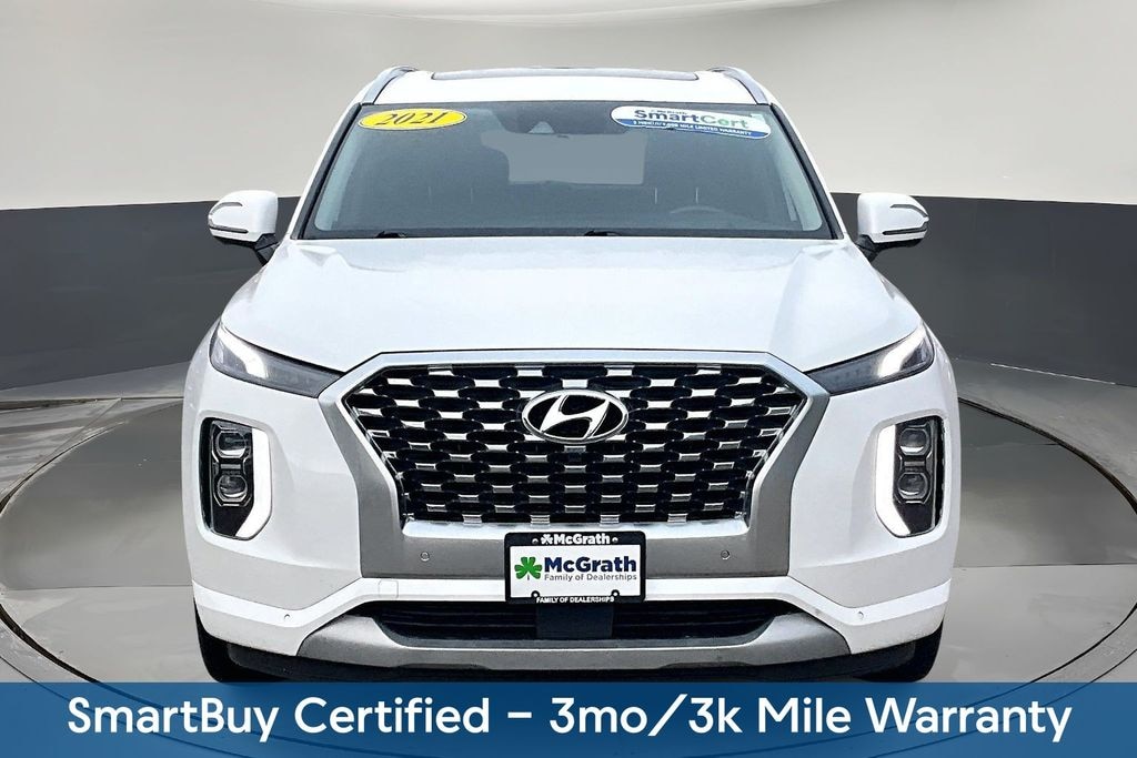 Discover the ultimate family-friendly SUV in the 2021 Hyundai Palisade Limited. This stunning white Palisade boasts a powerful V6 engine, advanced all-wheel-drive capabilities, and an impressive array of premium features that will elevate your driving experience.