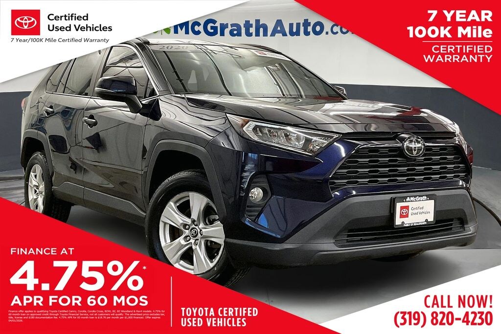 Discover the versatile and well-equipped 2020 Toyota RAV4 XLE, a standout in the compact SUV segment. With its striking blue exterior and a host of premium features, this Toyota Gold Certified pre-owned vehicle is the perfect blend of style, comfort, and capability.
