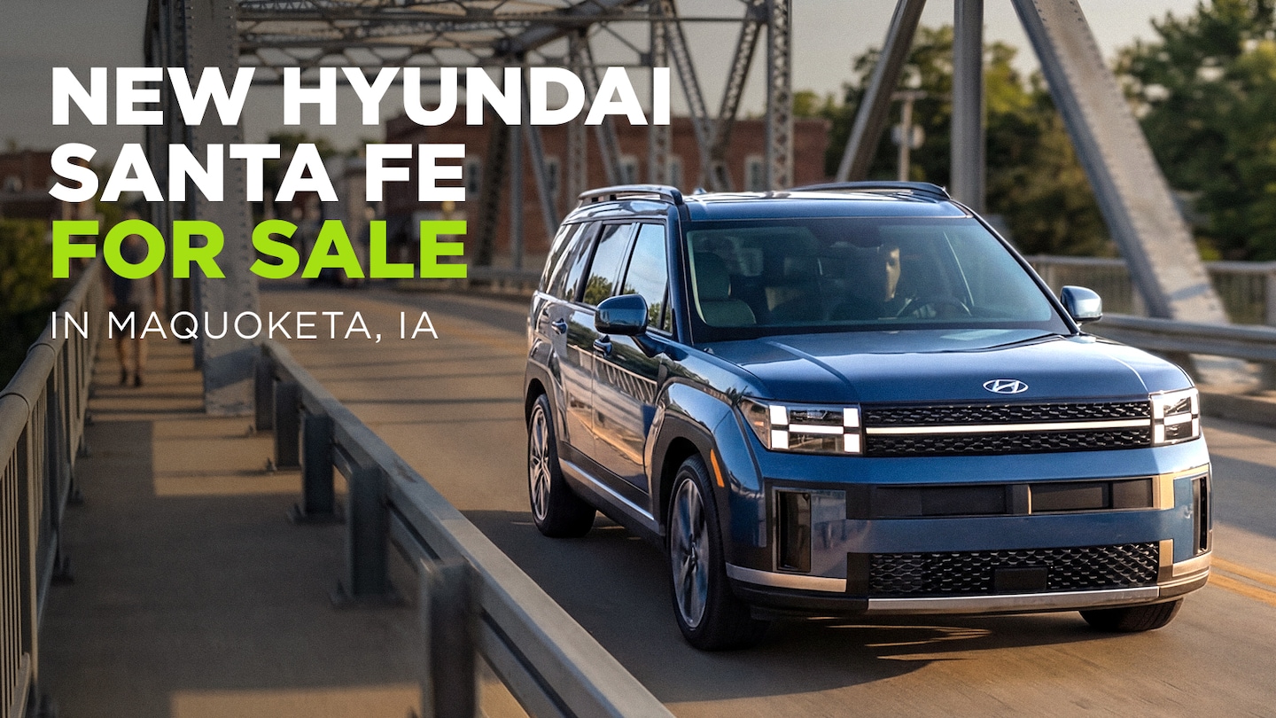 Explore the latest new Hyundai Santa Fe in Maquoketa, IA. Enjoy upfront pricing, quick financing approvals, and convenient delivery throughout Eastern Iowa. Explore available inventory, compare trims and features, and book your test drive today.