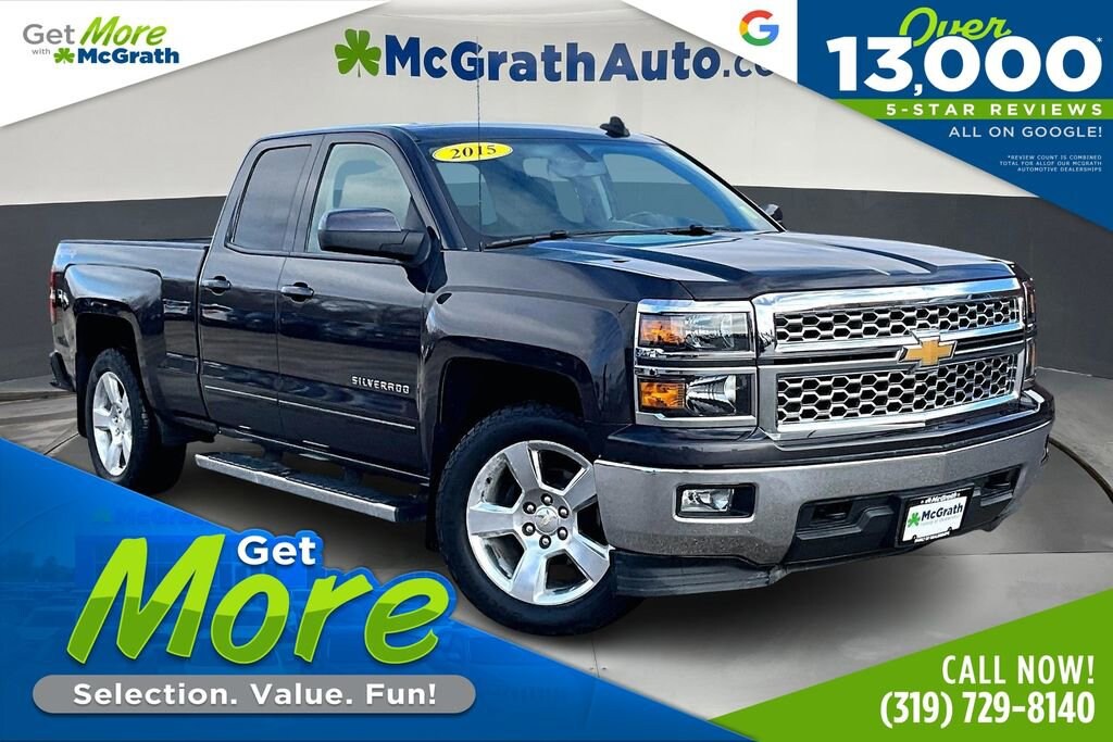 Elevate Your Drive with the 2015 Chevrolet Silverado 1500 LT LT1This exceptional 2015 Chevrolet Silverado 1500 LT LT1 is the perfect blend of power, capability, and refined style. With its rugged 4WD drivetrain and the potent EcoTec3 5.3L V8 engine, this Silverado is ready to take on any challenge, whether it's towing your boat to the lake or conquering the toughest terrain.Key features of this well-equipped Silverado include: SPORT, 1LT TRIM with 20 wheels LT Convenience Package with remote start, MyLink 8 infotainment system, and more Trailering Equipment including integrated trailer brake controller E85 Flex-Fuel CapableThe interior of this Silverado is equally impressive, with comfortable cloth seating, dual-zone automatic climate control, and a premium audio system with SiriusXM satellite radio. The 10-way power driver's seat and tilt/telescoping steering wheel ensure a perfect driving position, while the Rear Vision Camera and OnStar with 4G LTE connectivity provide added convenience and peace of mind.Beyond its impressive list of features, this Silverado also boasts exceptional fuel efficiency, delivering an EPA-estimated 22 MPG on the highway. Whether you're hauling heavy loads or just enjoying the open road, this truck will get you there in comfort and style.At our dealership, we're committed to providing our customers with the highest level of service and transparency. We understand that purchasing a vehicle is a significant investment, and we're here to guide you through the process every step of the way.Don't miss your chance to experience the power and capability of the 2015 Chevrolet Silverado 1500 LT LT1. Schedule a test drive today and let us show you why this truck is the perfect fit for your lifestyle.Prices may change at any time and are subject to availability and prior sale. Taxes, title, license fees, and a $180 documentation fee are not included. Payments shown are estimates; actual terms vary by buyer and credit approval. Dealer is not responsible for errors in pricing or vehicle details, information is believed accurate but not guaranteed. Photos are for illustration only confirm details with the dealer. Some vehicles come with a $1295 Clear Guard package. Fuel economy ratings and driving range figures are based on EPA estimates for new vehicles, and actual mileage and range may vary. By submitting your phone number, you consent to occasional SMS or calls about our products and promotions; standard messaging rates apply. See dealer for details. Fuel economy figures are official EPA estimates and clearly labeled as such.