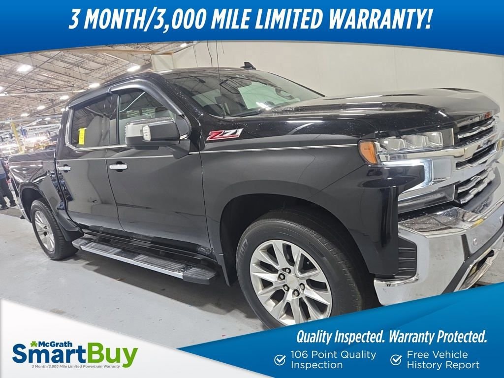 10-Speed Automatic, 4WD, Jet Black Leather. 22/26 City/Highway MPG CARFAX One-Owner. Clean CARFAX.Certification Program Details: McGrath SmartBuy Benefits: * 3 Month / 3,000 Mile Limited Powertrain Warranty * Free Vehicle History Report * 106 Point Full Vehicle Condition Inspection 2021 Chevrolet Silverado 1500 LTZ 3.0L I6 4WDWelcome to McGrath Auto, your destination for industry leading automotive experiences. We’re proud to deliver unmatched quality and service. With over 13,000 5-star Google reviews, our customers’ trust and satisfaction drive everything we do. Whether you’re buying, servicing, or building your fleet, experience why McGrath Auto is the top choice for all your automotive needs! We’ve got everything from tough trucks to fuel-sipping commuters and adventure-ready SUVs. Our vehicles go through a rigorous inspection process, and we offer multiple layers of certification based on the vehicle's age, mileage and inspection results. Whether you’re shopping for a brand-new ride or a budget-friendly pre-owned gem, we’re here to make the process easy, fun, and stress-free.Freight fees (not required by law) are included in advertised pricing. Tax, title, license, tags, electronic titling fees, a $180 documentation fee, and any other applicable dealer fees are not included and are the responsibility of the purchaser. Some in-stock vehicles may include a $1,295 Clear Guard Protection package that is pre-installed on select vehicles. MSRP (Manufacturer’s Suggested Retail Price) is provided for informational purposes only and is not the dealer’s advertised or selling price. Advertised pricing complies with manufacturer guidelines and may include all applicable rebates and incentives assigned to the dealer. Additional discounts or savings may be available please contact the dealership to confirm eligibility. All prices, payments, specifications, features, and availability are subject to change without notice and prior sale. Example payments are estimates for illustrative purposes only; actual terms vary based on credit approval, and not all buyers will qualify. Certain factory incentives may not be combined with promotional APR offers. All offers may require financing or leasing through approved lenders. While every reasonable effort is made to ensure accuracy, errors may occur. Please verify all information, including pricing, equipment, and availability, with a dealership representative prior to purchase. Some in-stock vehicles may include a $1,295 Clear Guard Protection package. Fuel economy and driving range figures are EPA estimates; actual mileage and range may vary. The dealer is not responsible for the accuracy of information provided by third-party websites or advertisements not generated by the dealership. By submitting your phone number online, you consent to receive occasional SMS or voice communications regarding products and promotions; standard messaging rates may apply.