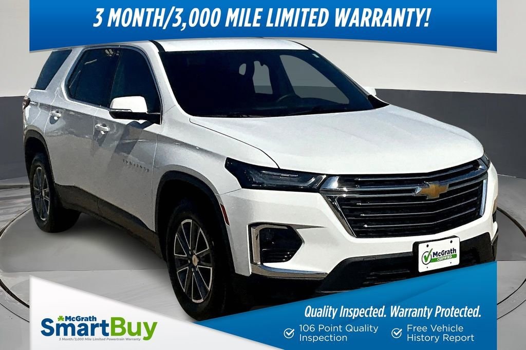 Step into the driver's seat of this exceptional 2022 Chevrolet Traverse LT Leather and experience the perfect blend of style, capability, and convenience. This stunning SUV is ready to elevate your driving experience and take you on unforgettable adventures.Boasting a sleek White exterior and a spacious, well-appointed interior, the Traverse LT Leather is a true head-turner. Its impressive 3.6L V6 SIDI VVT engine, paired with a 9-Speed Automatic transmission and AWD, delivers a thrilling and confident ride, while the exceptional fuel efficiency of 17 city/25 highway MPG ensures you can go the distance without frequent stops.- Cargo Package (LPO)- Front License Plate Bracket Mounting Package- Preferred Equipment Group 3LTThis Traverse is more than just a pretty face. It's packed with an array of premium features that will elevate your driving experience, including the Chevrolet Infotainment 3 Plus System, Dual-Zone Automatic Climate Control, Heated Front Seats, and a Power Liftgate. The spacious interior offers seating for up to eight passengers, ensuring everyone can ride in comfort.Safety is also a top priority, with features like Rear Park Assist, Rear Vision Camera, and a comprehensive suite of airbags to give you and your loved ones peace of mind on the road.As a Certified Pre-Owned (CPO) vehicle, this Traverse has undergone a rigorous inspection and reconditioning process, ensuring it meets the highest standards of quality and reliability. With the added benefits of the Chevrolet CPO warranty, you can drive with confidence, knowing your investment is protected.Don't miss your chance to experience the versatility, technology, and style of this exceptional 2022 Chevrolet Traverse LT Leather. Schedule a test drive today and discover why this SUV is the perfect fit for your lifestyle.Prices may change at any time and are subject to availability and prior sale. Taxes, title, license fees, and a $180 documentation fee are not included. Pricing reflects all applicable rebates and incentives assigned to the dealer. Example payments are estimates; actual terms vary based on credit approval. APR and payment estimates apply to qualified buyers, not all buyers qualify for advertised rates. Factory cash incentives may not be combined with promotional APR. Fuel economy ratings and driving range figures are based on EPA estimates for new vehicles, and actual mileage and range may vary. Some in-stock vehicles may include a $1,295 Clear Guard Protection package By submitting your phone number online, you consent to occasional SMS or voice calls about our products and promotions; standard messaging rates may apply. Consult dealer for offer eligibility and other details. Factory MSRP is not the final advertised/asking price of the vehicle. Fuel economy figures are EPA estimates.