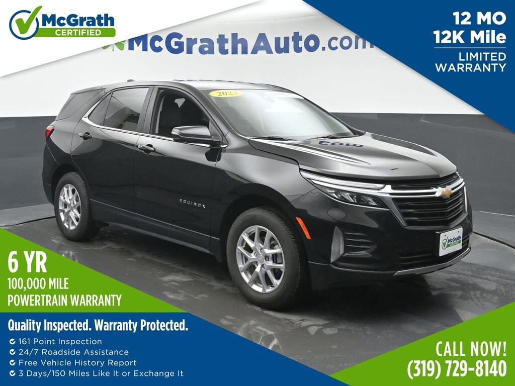Introducing the 2023 Chevrolet Equinox LT - a sophisticated and versatile SUV that's ready to elevate your driving experience. With its sleek black exterior and a wealth of advanced features, this Equinox is the perfect blend of style and substance. Clean Carfax Confidence & Convenience Package Safety and Infotainment Package Side Blind Zone and Rear Cross TrafficUnder the hood, you'll find a 1.5L DOHC engine mated to a 6-Speed Automatic Electronic with Overdrive transmission, delivering a smooth and efficient performance. With an impressive EPA-estimated 24 city/30 highway MPG, this Equinox offers the perfect balance of power and efficiency, making it an ideal choice for your daily commute or weekend adventures.The Equinox LT is packed with a host of premium features that will keep you connected, comfortable, and safe on the road. Enjoy the convenience of keyless entry, remote start, and a power liftgate, while staying entertained with the Chevrolet Infotainment 3 Plus System and SiriusXM Radio. The Confidence & Convenience Package and Safety and Infotainment Package add even more advanced technology, including Adaptive Cruise Control, Lane Change Alert with Side Blind Zone Alert, and Rear Cross Traffic Alert, providing you with peace of mind on every journey.Slip into the premium cloth seats and experience the ultimate in comfort, with the added benefit of heated front seats and a heated steering wheel. The split-folding rear seat offers exceptional versatility, allowing you to easily accommodate your cargo needs.This 2023 Chevrolet Equinox LT is a certified pre-owned vehicle, meaning it has undergone a rigorous inspection and comes with an extended warranty for your added assurance. With its impressive features, efficient performance, and the confidence of a certified pre-owned designation, this Equinox is an exceptional value that you won't want to miss.Prices may change at any time and are subject to availability and prior sale. Taxes, title, license fees, and a $180 documentation fee are not included. Pricing reflects all applicable rebates and incentives assigned to the dealer. Example payments are estimates; actual terms vary based on credit approval. APR and payment estimates apply to qualified buyers, not all buyers qualify for advertised rates. Factory cash incentives may not be combined with promotional APR. Fuel economy ratings and driving range figures are based on EPA estimates for new vehicles, and actual mileage and range may vary. Some in-stock vehicles may include a $1,295 Clear Guard Protection package By submitting your phone number online, you consent to occasional SMS or voice calls about our products and promotions; standard messaging rates may apply. Consult dealer for offer eligibility and other details. Factory MSRP is not the final advertised/asking price of the vehicle. Fuel economy figures are EPA estimates.