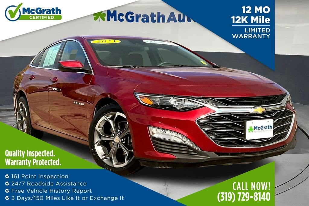 27/35 City/Highway MPG CARFAX One-Owner.Certification Program Details: McGrath Certified Benefits: * Free Vehicle History Report * 106 Point Full Vehicle Condition Inspection * Like it or Exchange it! Three Day Policy 2023 Chevrolet Malibu LT 1LT 1.5L DOHC FWDWelcome to McGrath Chevy, your destination for award-winning automotive experiences. We were voted CBJ's 2024 #1 Coolest Place to Work and winner of 2024 Best of the Best Auto Dealer, Auto Service, and Fleet Dealer. We’re proud to deliver unmatched quality and service. With over 11,000 5-star Google reviews, our customers’ trust and satisfaction drive everything we do. Whether you’re buying, servicing, or building your fleet, experience why McGrath Chevy is the top choice for all your automotive needs! We’ve got everything from tough trucks to fuel-sipping commuters and adventure-ready SUVs. Our vehicles go through a rigorous inspection process, and we offer multiple layers of certification based on the vehicle's age, mileage and inspection results. Whether you’re shopping for a brand-new ride or a budget-friendly pre-owned gem, we’re here to make the process easy, fun, and stress-free.Prices may change at any time and are subject to availability and prior sale. Taxes, title, license fees, and a $180 documentation fee are not included. Payments shown are estimates; actual terms vary by buyer and credit approval. Dealer is not responsible for errors in pricing or vehicle details, information is believed accurate but not guaranteed. Photos are for illustration only confirm details with the dealer. Fuel economy ratings and driving range figures are based on EPA estimates for new vehicles, and actual mileage and range may vary. By submitting your phone number, you consent to occasional SMS or calls about our products and promotions; standard messaging rates apply. See dealer for details. Fuel economy figures are official EPA estimates and clearly labeled as such.