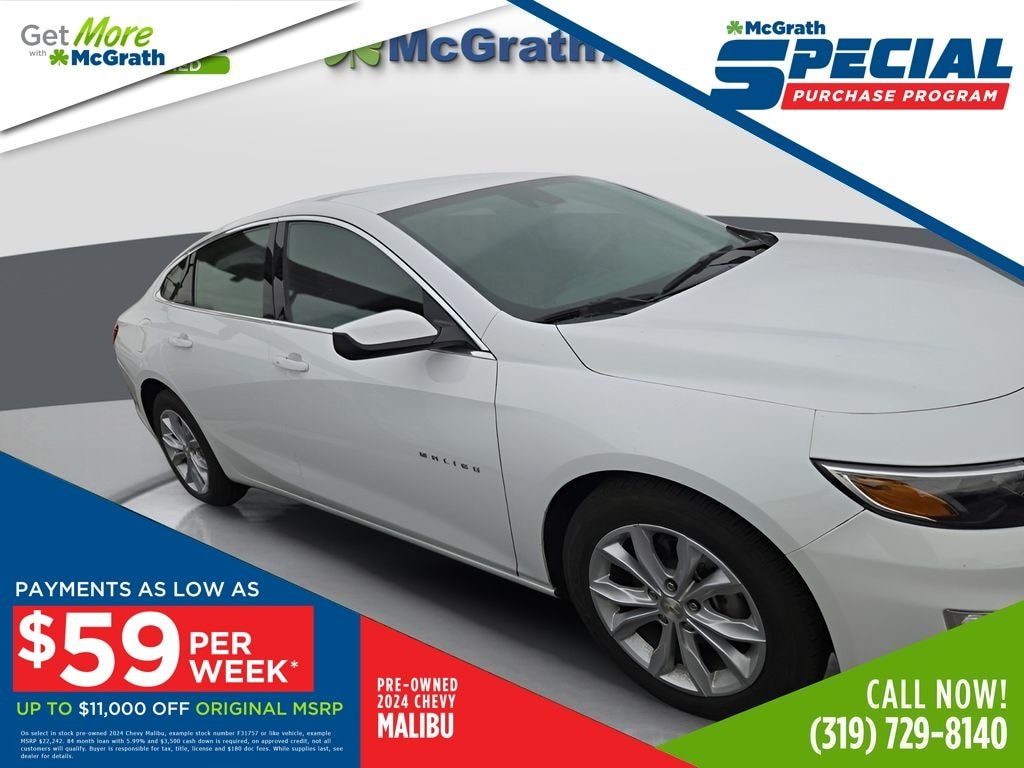 Certification Program Details: McGrath Certified Benefits: * Free Vehicle History Report * 106 Point Full Vehicle Condition Inspection * "Like it or Exchange it!" Three Day Policy 2024 Chevrolet Malibu LT 1LT 1.5L DOHC FWD