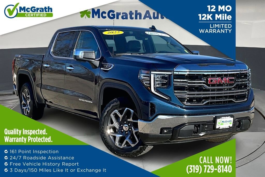 Experience the Exceptional: Discover the 2022 GMC Sierra 1500 SLTElevate your driving experience with this remarkable 2022 GMC Sierra 1500 SLT. Boasting a bold and capable design, this truck is ready to tackle any adventure with its impressive features and capabilities. X31 Off-Road and Protection Package SLT Convenience Package SLT Preferred Package Wireless Charging Bose Premium Audio System Ventilated Front Seats Heated Second Row Outboard Seats Adaptive Cruise Control Rear Sliding Power Window Universal Home RemoteUnder the hood, the Sierra 1500 SLT is powered by a robust EcoTec3 5.3L V8 engine, paired with a smooth-shifting 10-Speed Automatic transmission and 4-Wheel Drive. With a city fuel economy of 14 MPG and a highway rating of 19 MPG, this truck delivers the perfect balance of power and efficiency.Designed to impress, the Sierra 1500 SLT boasts a stunning Blue exterior, complemented by a spacious and well-appointed interior. The premium leather-appointed seats, along with the advanced infotainment system and state-of-the-art safety features, create an unparalleled driving experience.This Sierra 1500 SLT is more than just a truck it's a statement of your refined taste and adventurous spirit. With its exceptional capabilities, advanced technology, and refined style, it's the perfect companion for both work and play.Certified Pre-Owned vehicles undergo a rigorous inspection and reconditioning process, ensuring you can drive with confidence. This Sierra 1500 SLT has been meticulously inspected and comes with the peace of mind of a Certified Pre-Owned warranty.Don't miss your chance to own this exceptional 2022 GMC Sierra 1500 SLT. Visit our showroom today and experience the power, capability, and sophistication that this truck has to offer.Prices may change at any time and are subject to availability and prior sale. Taxes, title, license fees, and a $180 documentation fee are not included. Payments shown are estimates; actual terms vary by buyer and credit approval. Dealer is not responsible for errors in pricing or vehicle details, information is believed accurate but not guaranteed. Photos are for illustration only confirm details with the dealer. Some vehicles come with a $1295 Clear Guard package. Fuel economy ratings and driving range figures are based on EPA estimates for new vehicles, and actual mileage and range may vary. By submitting your phone number, you consent to occasional SMS or calls about our products and promotions; standard messaging rates apply. See dealer for details. Fuel economy figures are official EPA estimates and clearly labeled as such.