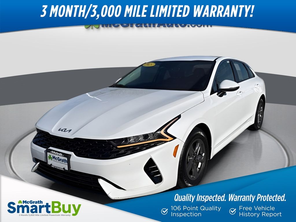 Experience the sleek and sophisticated 2023 Kia K5 LXS. This stunning midsize sedan boasts a striking Glacial White Pearl exterior that commands attention on the road. With its turbocharged 1.6L I4 engine and 8-speed automatic transmission, the K5 LXS delivers an impressive blend of power and efficiency, achieving up to 37 MPG on the highway.