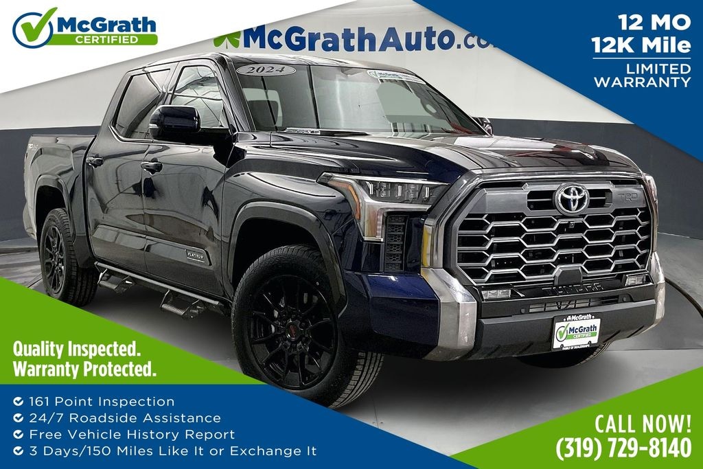 As a McGrath Certified pre-owned vehicle, this Tundra Hybrid Platinum has undergone a rigorous inspection and comes with a comprehensive 12-month/12,000-mile warranty, giving you the peace of mind you deserve. Experience the pinnacle of power, technology, and refinement with the 2024 Toyota Tundra Hybrid Platinum.
